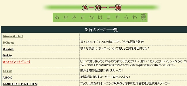 メーカーの取り扱い作品の特徴が紹介されているので、好きなジャンルのメーカーをチェックすることが出来ます。